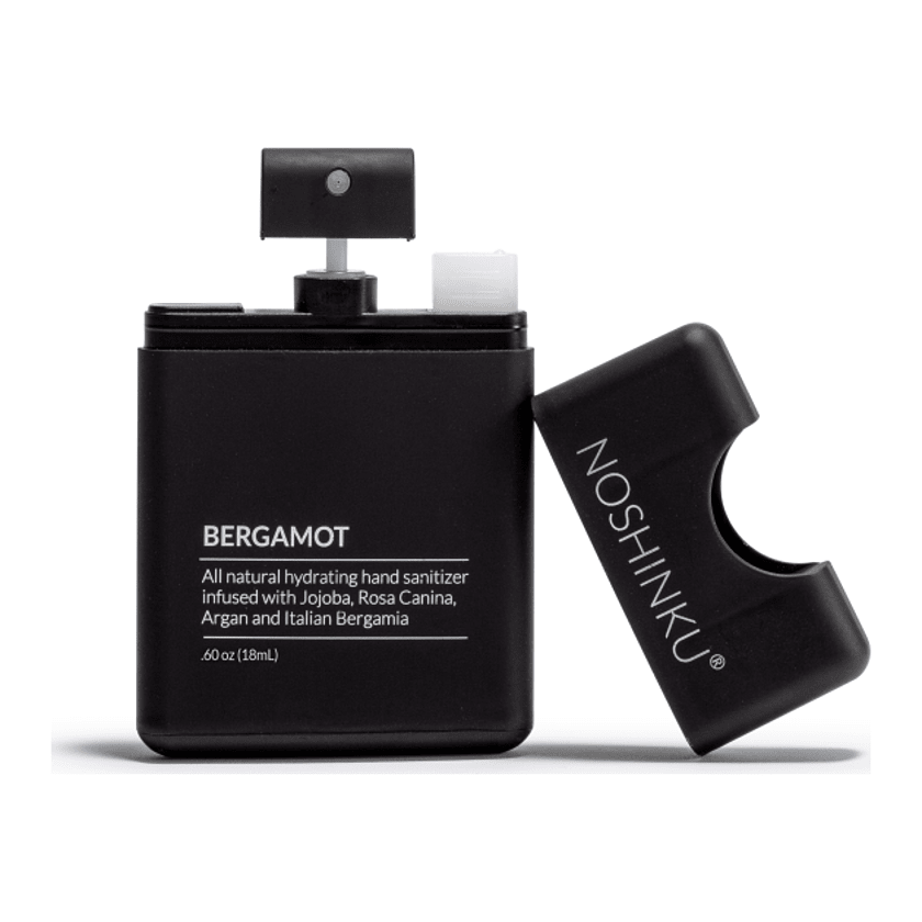 The 0.6oz Noshinku Refillable Pocket Hand Sanitizer features a hydrating and nourishing sanitizer blended with 70% pharma-grade ethyl alcohol distilled from organic cane sugar alongside a conditioning blend of Aloe, Rosa Canina, Jojoba and Argan to soothe, moisturize and protect skin.