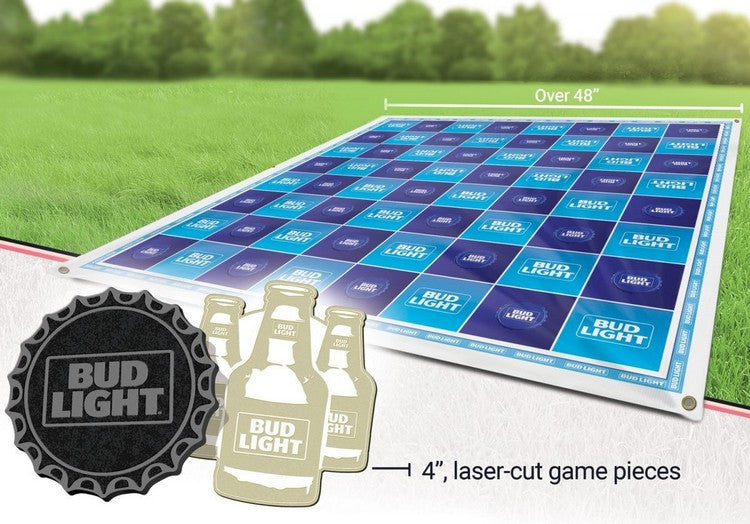 Our Giant Checkers Game is great for your next indoor or outdoor event! The canvas playing surface is 48in by 48in, can be customized with any color and logo you desire, and comes with 24 customizable laser cut or engraved 4in diameter wood playing pieces! Grommets on the corners ensure a secure playing surface for outdoor play. Price includes full color printing and there is no setup fee or art charge. 48" L x 48" W