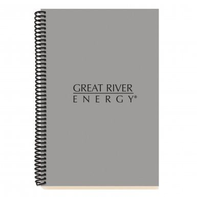 ECO notebook with black spiral binding, 13 pt soft cover and 144 ivory lined pages. Notebook pages and covers are colored with organic, soy based inks and are made in Canada with 90% recycled materials. (Journal inner page dimension is 6" x 9"
