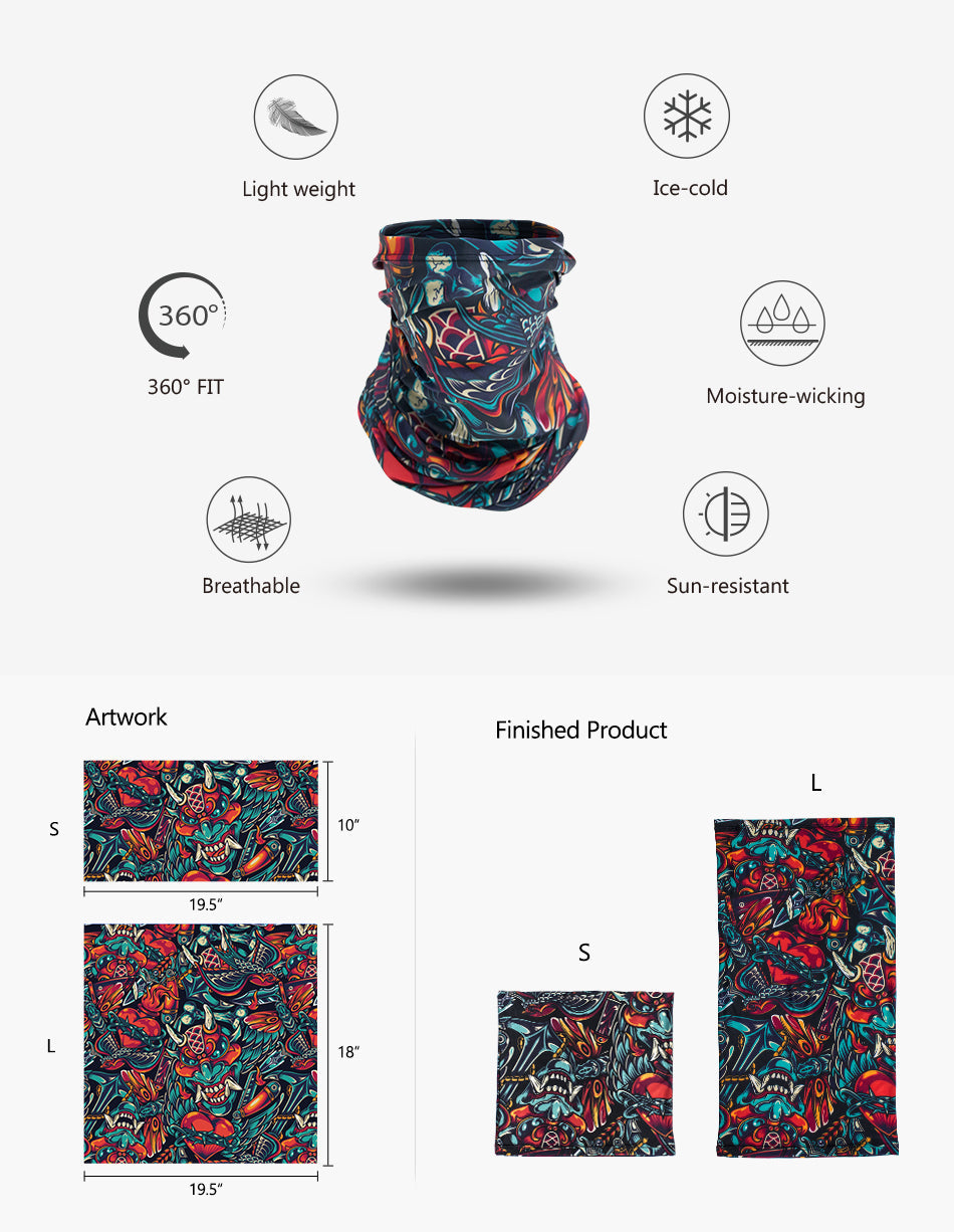 Our headwear is made of soft elastic polyester. It can be used as a face mask, bandana, wristband, hood, hair tie. etc with images or logo you like printed on it. It can be a fashion accessory and also an eye-catching tool to make your brand recognized.