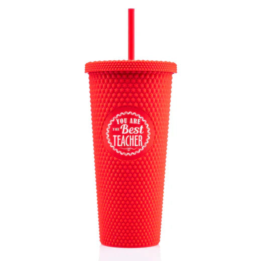 - 24 oz studded reusable tumbler with lid and straw